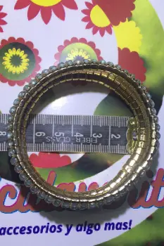 Bellísimo brazalete con cristales Amrita Singh. Bellísimo Brazalete Amrita Singh, Kenmare (esposa) Ancha elástica con cristales turquesa, interior con baño de oro.