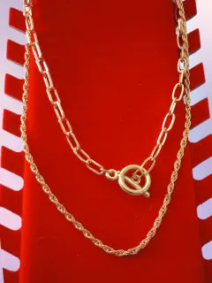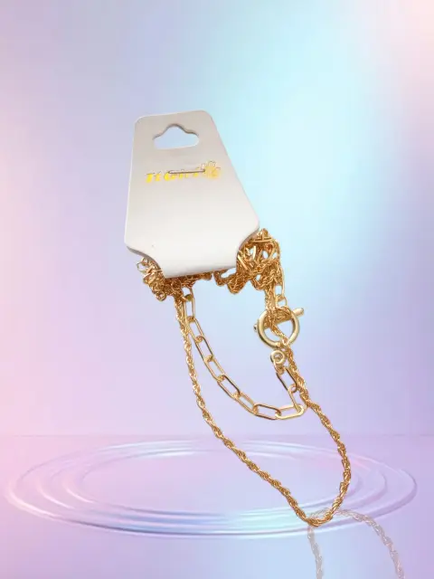 Cadena doble con dije de Fantasia It Gir. Cadena doble con dije de Fantasia It GirL, color dorado, diseño de cadenas trenzadas delgada y ancha con Dije Redondo, hecha de acero inoxidable Nueva a estrenar con etiqueta
