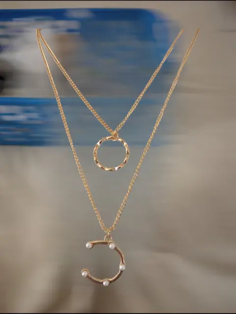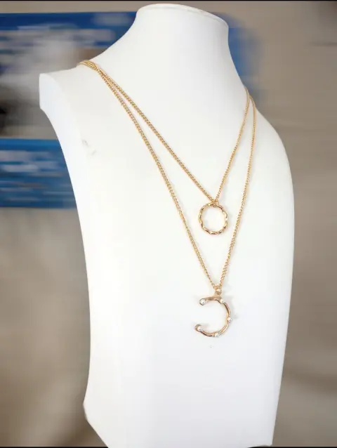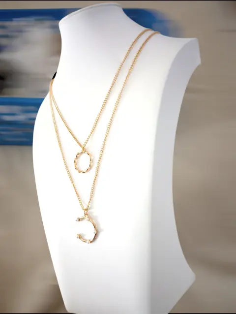 Cadena doble con doble Dije. Cadena doble con doble Dije de AJ Accessories, color dorado, doble Dije de C con estilo trensado, mide 35cm de largo hechos de acero inoxidable Nueva a estrenar con etiqueta