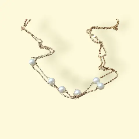 Cadena para Cintura AJ Fashion Jewelry , color dorado con cuentas blancas, tamaño estandar, cherry de broche, dale un toque extra a tus atuendos, hecha con materiales sintéticos, mide 38cm de circumcision, nueva a estrenar con etiqueta en buen estado cosmetico.
