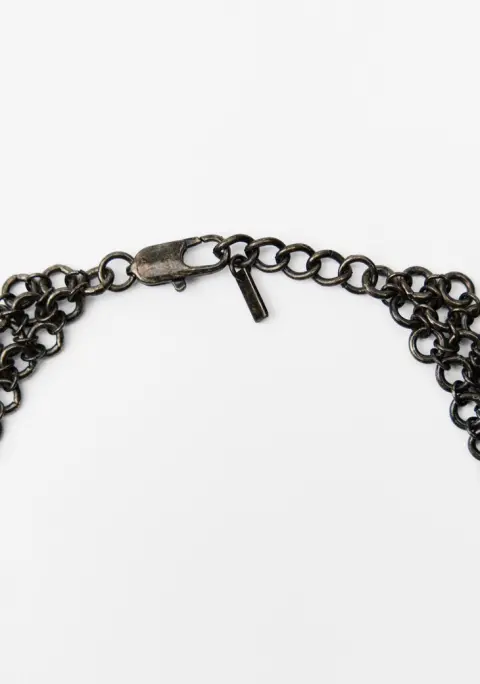 El brillo en un accesorio como collar o pulsera o anillo es un must!! NUEVO!! Hermoso collar en tonos grafito con cristales (no es plástico) para un mejor brillo. Sin detalles. Tiene sus cinchos de aseguramiento para asegurar que nunca ha sido usado. Perfecto para regalo y con cualquier outfit con escote y unos sencillos aretes. Más opciones en mi clóset. Px original $799.00
