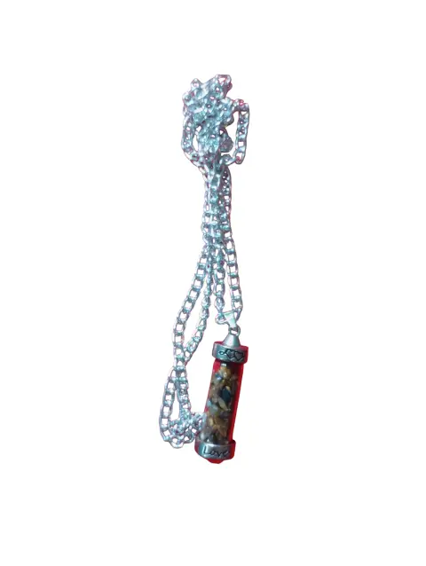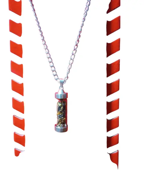 Collar con Dije de pendulo caryter. Collar con Dije de pendulo caryter, cadena trensada de Fantasia con Dije 3D, en color transparente con pedacitos de Madera color cafe, El toque ideal para tus atuendos casuales Nuevo a estrenar con etiqueta en buen estado cosmetico.