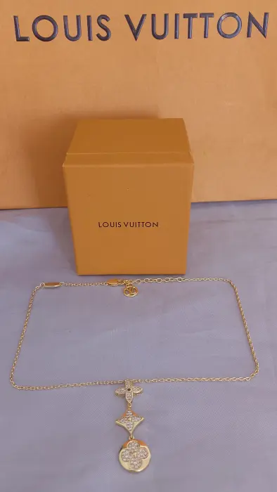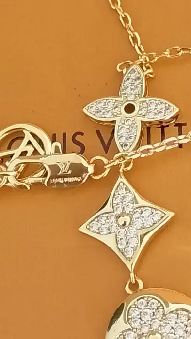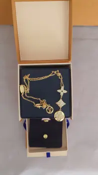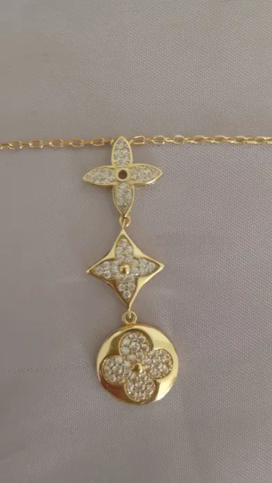 Collar con dije Florograma. Collar de cadena con dije de flor con Cristales de baguette, y broche de langosta incluye Alhajero.