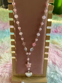 Hermoso collar de cristales y piedras acrílicas, tipo rosario de un hermoso color pastel, una hermosa pieza de bisutería para darle un hermoso toque a tus prendas.