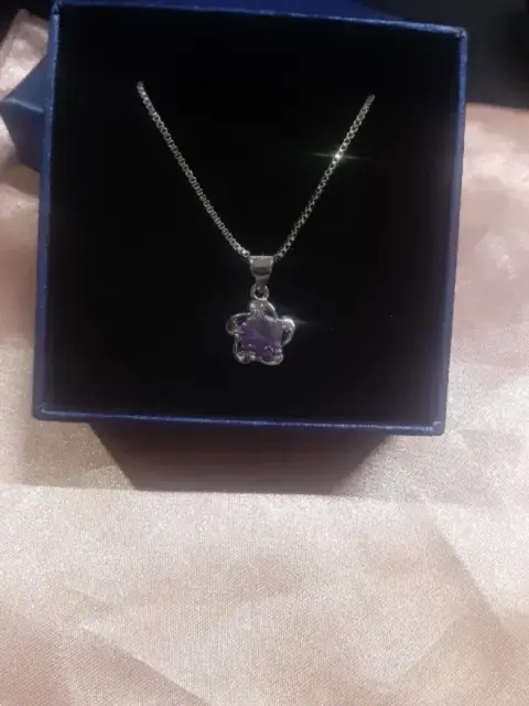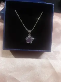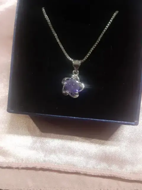 Hermosos 💜collar de florconncentro morado, hechos de plata S925, vienen quintados la cadena y dije con incrustaciones de circonias. La cadena mide 45cm aprox.