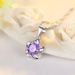 Collar de flor morada. Hermosos 💜collar de florconncentro morado, hechos de plata S925, vienen quintados la cadena y dije con incrustaciones de circonias. La cadena mide 45cm aprox.