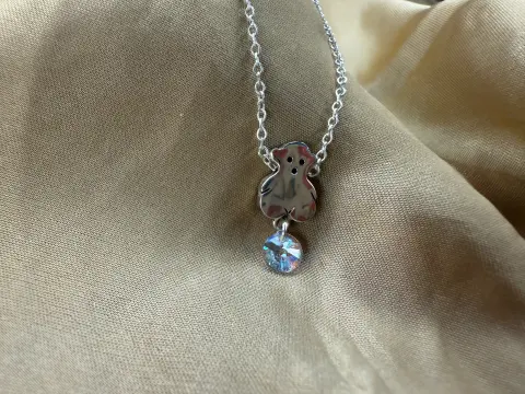 Hermoso collar de plata con dije de oso y Swarovski tornasol. La cadena mide 45cm y tiene extension de 4cm. diseño chic. ideal para cualquier outfit :)
