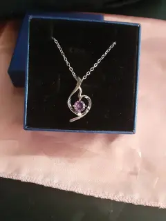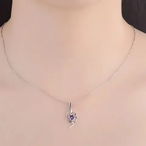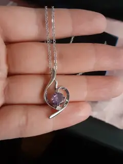 Hermoso collar plateado de color morado, chapado en plata, mide 45cm aprox. con incrustaciones de circonia morada. Si te interesan mas artículos de mi closet te puedo armar paquete y hacerte descuento.
