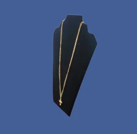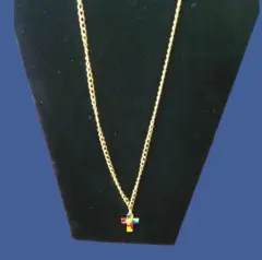 Collar trenzado color dorado con Dije conciencia del Autismo en forma de cruz multicolor y broche de rosca, mide 34cm de largo con el dije, nuevo a estrenar.