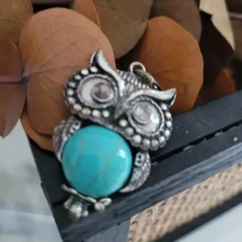 Hermoso dije en forma de Buo con accento en piedra de opalo, cuerpo de metal con paucity de opalo con deyalles hechos a mano solo agregalo a tu cadena favorita y Robards Miranda's donde sea que lo portes