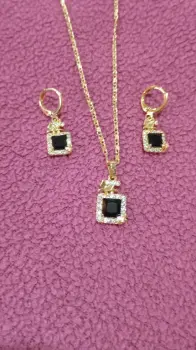 Juego de joyería en oro laminado con piedras color negro. Nuevo! Muy elegante!