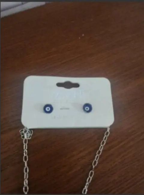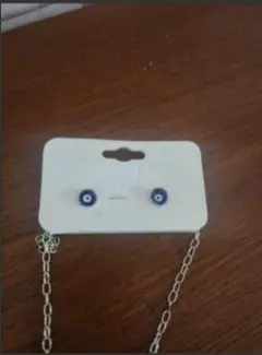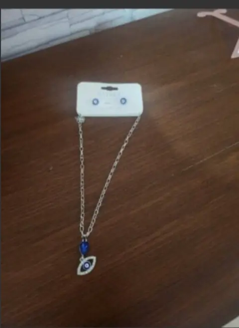 Mint Collection Cadena C/Dije y Aretes. Mint Collection Cadena C/Dije y Aretes, en color Plata Con Piedras y acentos de Piedras azules y blancas de Fantasia con cierre de broche y precious, cadena trensada, mide 21cm de largo Nuevo a estrenar Con etiqueta en buen estado cosmetico.