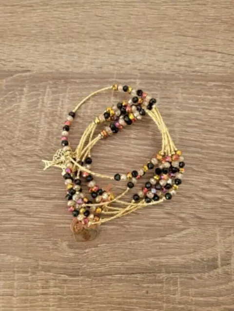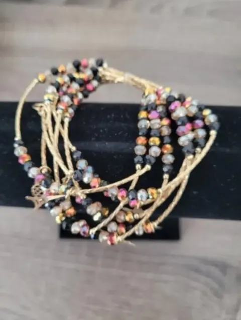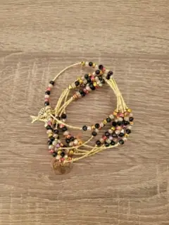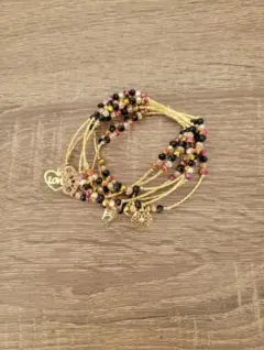 Pulcera Estilo Semanario Beads Multicolo. Multi-color semanario pulcera con dijes en multicolores y dorado con acentos de beads y multi dijes con cadena planchada de laminado en fantasia color dorado, tiene 5cm de circumferencia nueva a estrenar lucela con tus looks casuales o formal.