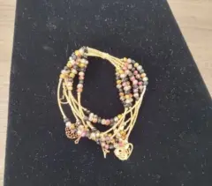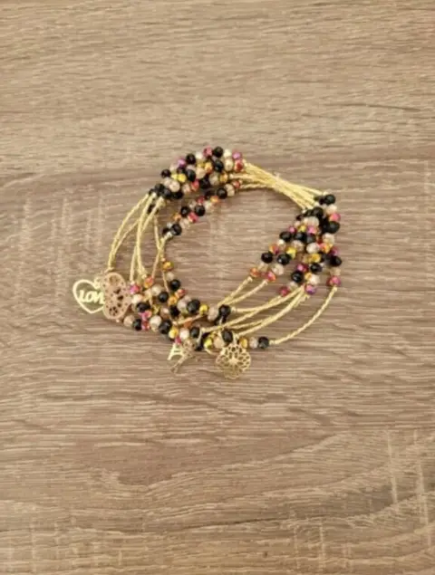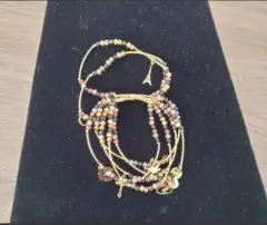 Multi-color semanario pulcera con dijes en multicolores y dorado con acentos de beads y multi dijes con cadena planchada de laminado en fantasia color dorado, tiene 5cm de circumferencia nueva a estrenar lucela con tus looks casuales o formal.