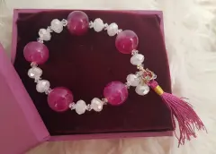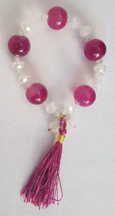 Pulsera Cristal, Piedra & Copete. Pulsera Autoajustable c/piedra natural tono PÚRPURA DEGRADADO, cristal facetado color BLANCO TORNASOL/TRANSLÚCIDO y copete. Dimensiones cms: 6 diámetro.***EL BRILLO DE LA PULSERA ES MUY BELLO Y NO LO CAPTA LA FOTOGRAFÍA***QUEDA A UNA MUÑECA DELGADA******LA PULSERA SE ENTREGA SIN CAJA, ESTA SOLO ES UN ELEMENTO DECORATIVO***
