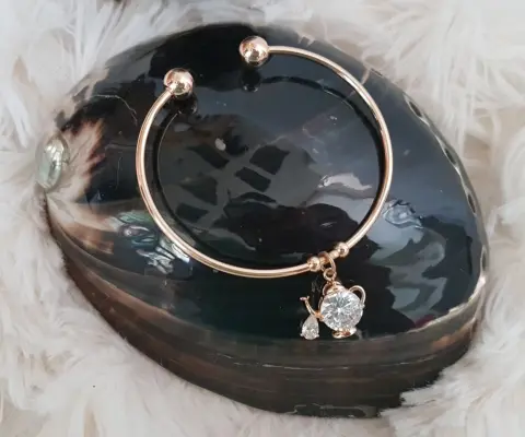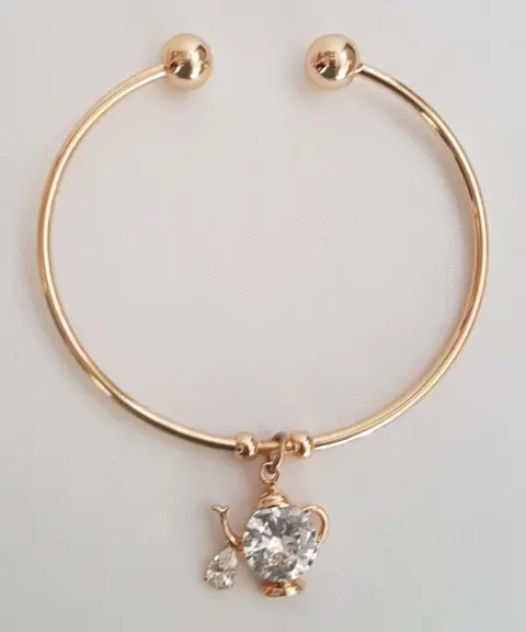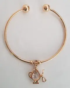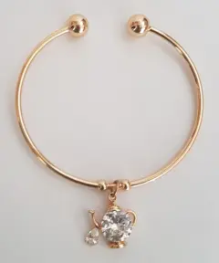Pulsera en tono DORADO c/dije de cafetera c/aplique de circonía translúcida. Dimensiones. cms: 6 circunferencia. Aleación de zinc.