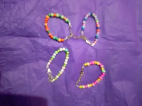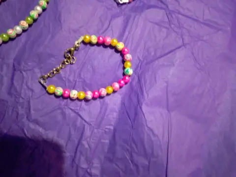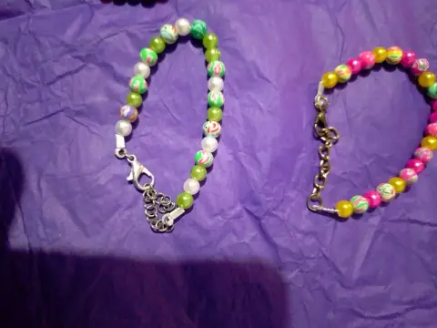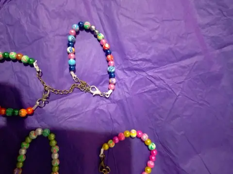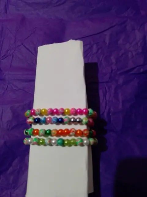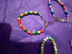 Pulseras multicolor. Pulseras multicolor de cuentas redondas de cerámica estampadas, con broche de langosta metálico
