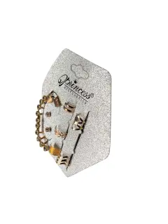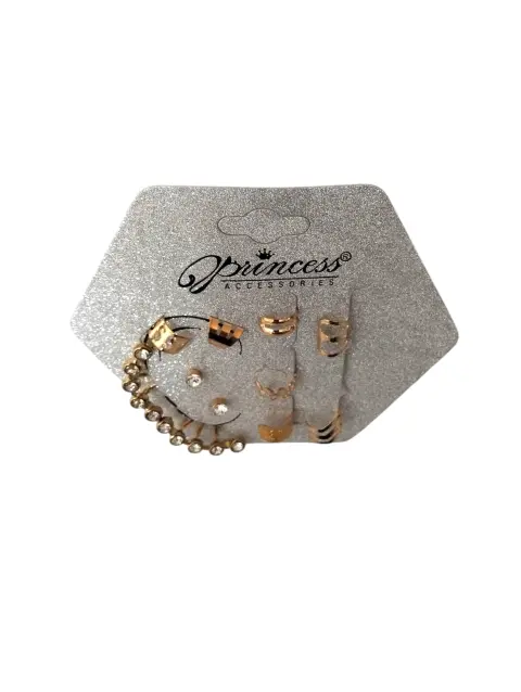 Set de 10-piezas separadas de aretes Priincess Accesories, color dorado y piedras blancas de fantacia, varios diferentes estilos hechos de acero inoxidable nuevos a estrenar con etiqueta en buen estado cosmético.