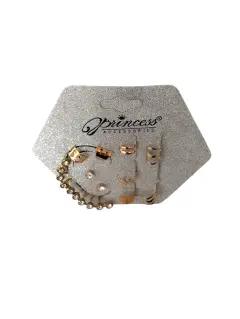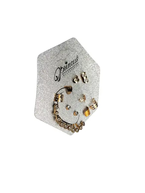 Set de 10-piezas separadas de aretes Pri. Set de 10-piezas separadas de aretes Priincess Accesories, color dorado y piedras blancas de fantacia, varios diferentes estilos hechos de acero inoxidable nuevos a estrenar con etiqueta en buen estado cosmético.