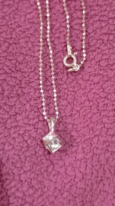 Set de aretes, dije y cadena en plata. El dije y los aretes tienen cristales tornasol. Excelentes condiciones.