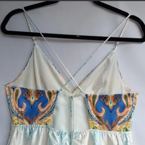 Palazzo de tirantes A.PEACH. 578Palazzo de tirantes A.PEACH Talla L Detalle de los tirantes X en espalda. Piernas anchas. Bolsas laterales, pierna ancha, los tirantes son ajustables. La tela estira un poco, Medidas tomadas por un solo lado: *Axila-Axila 46 cm *Cintura alta 39-43 cm *Cadera 64 cm *Largo 153 cm ⚜️ Por favor si vas a ofertar que sea solo porque tú compra será segura ⚜️