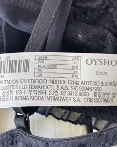 Bralette negro encaje Oysho. Bralette negro encaje con textura de bolitas.No tiene copas ni espacio para ponerlas.Talla: 32B Los tirantes son ajustables y tiene 4 medidas en el broche que cierra en la espalda. No tiene varillas. No tiene detalles.
