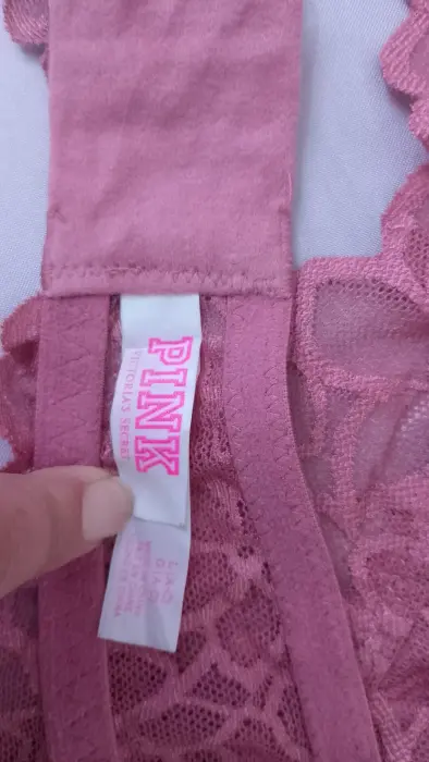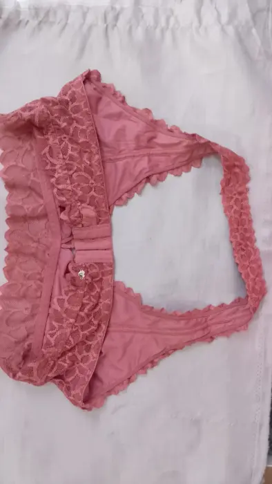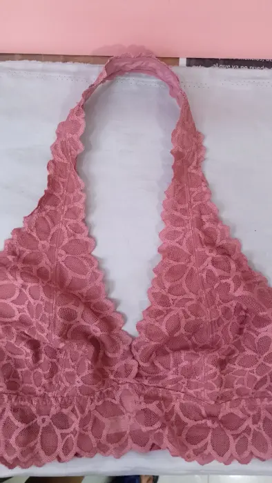 Brasier de encaje. Brasier de encaje con forro color rosa claro con tirantes al cuello y broche en la espalda.