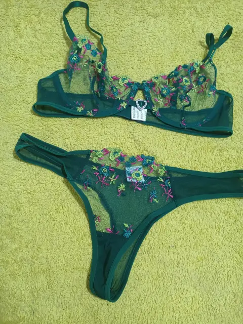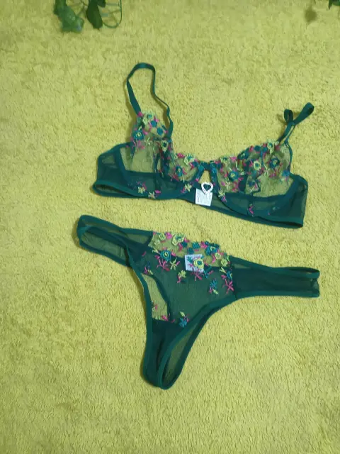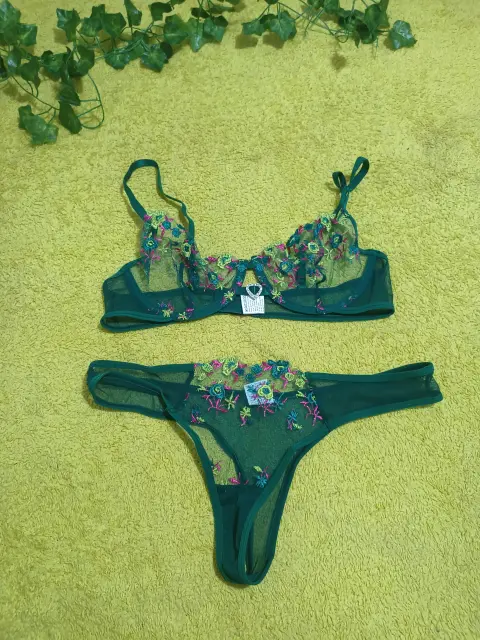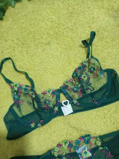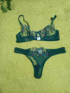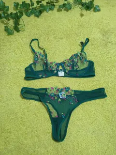 Coordinado verde de maya ☃️. Cordinado de lencería 2 piezas de maya con bordado talla chico Nuevo
