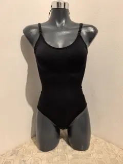 Faja moldeadora tipo Bodysuit talla XS/S, tirantes ajustables, tres filas de broches macho y hembra en la entrepierna.