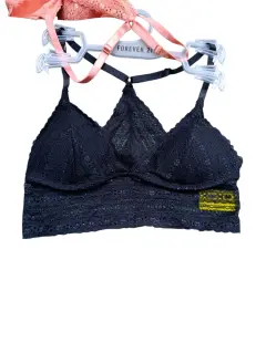 PAQUETE DE 2 BRALETTE TALLA M, MARCA FOREVER 21, CON COPAS DESMONTABLES,NYLON Y SPANDEX, CON ENCAJE, COLOR SALMON Y NEGRO