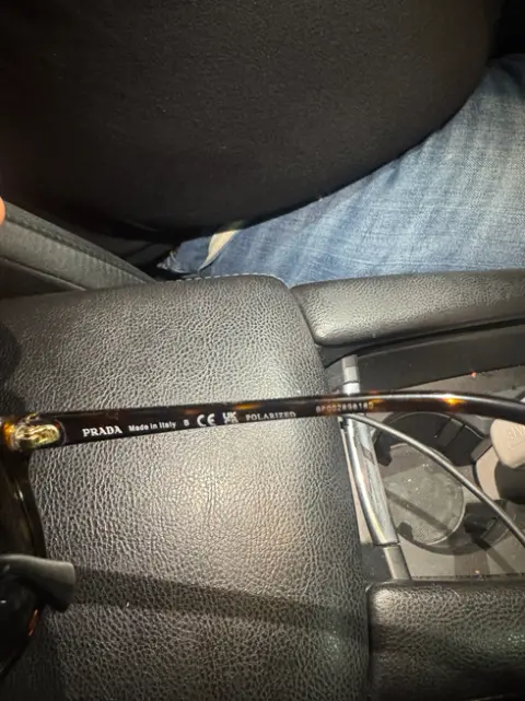 Lente de sol con armazón carey con detalle en las esquinas en color dorado.Marca Prada