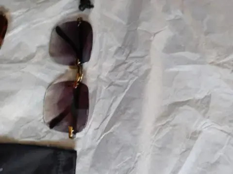 Par de gafas de sol. Par de gafas de sol cuadradas, negra y ámbar,incluyen bolsitaEnvío a la brevedad