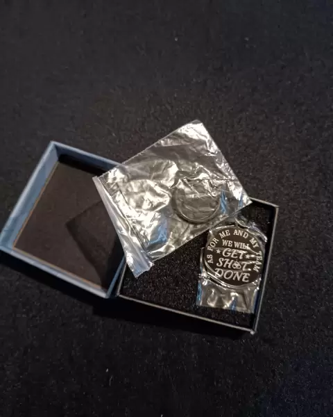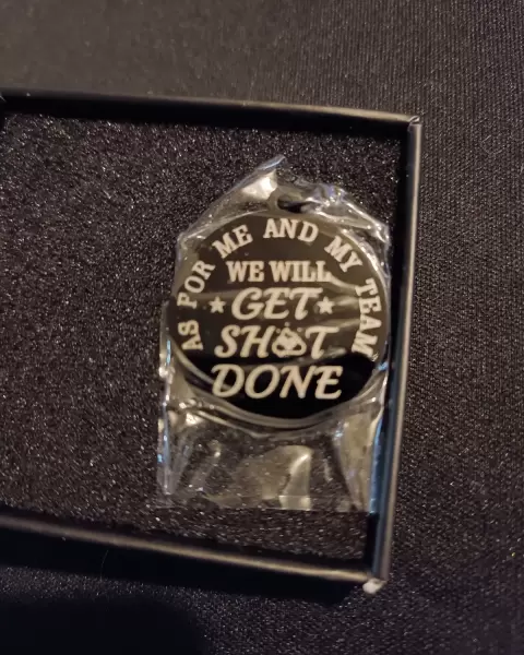 LLAVERO,MIDE 3 CM,CON FRASE EN INGLÉS WE WILL SHOT DONE,VIENE EN CAJA PARA REGALO,ENTRA EN 2 PRENDAS X $150