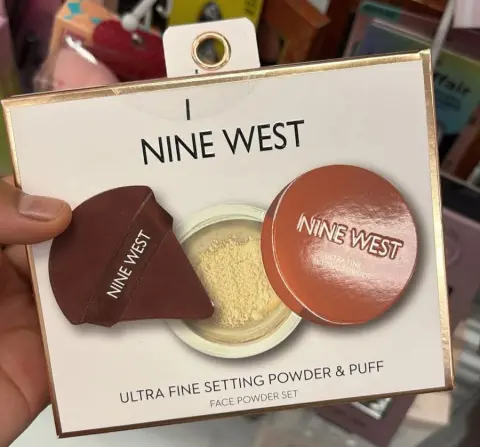 SET DE MAQUILLAJE NINE WEST 💋💋💋. Este es un set de maquillaje Nine West que incluye un polvo fijador ultra fino y una borla para aplicarlo. El polvo fijador está diseñado para sellar el maquillaje, controlar el brillo y proporcionar un acabado mate. La borla es un aplicador suave diseñado para una aplicación uniforme del polvo. Este tipo de producto es adecuado para todo tipo de pieles y ayuda a difuminar las imperfecciones.