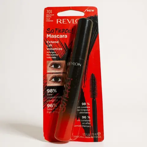 Mascara de pestañas Revlon So Fierce!tono 701 Blackest Black$200Listo para entrega inmediata 🚗 🎀La fórmula contiene polímeros, parafina y ceras de salvado de arroz🎀El cepillo cónico tiene 252 cerdas multicapa diseñadas para peinar y cubrir cada pestaña desde la raíz hasta la punta