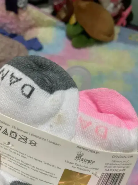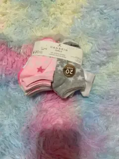 20 pares de calcetas marca “Danskin” para niña la talla dice para zapatos de 7 a 10 americano. ( es para niña chica 11 cm mide la planta) único detalle una manchita en una calceta pero se quita al enjuagar.