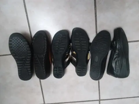 3 pares de zapatos súper cómodos marca flexi ,confort y hush puppies. Los cafe son nuevos,huarache 1sola puesta y el negro con la suela nueva