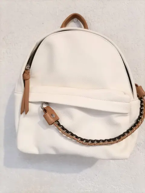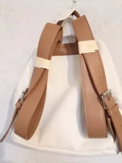 Mochila Isadora en Beige con acentos en Taupe. Mochila Isadora en Beige con acentos en Taupe, Mediana con 2 bolsa internas, accesorio de cadenas trensada con piel Taupe, bolsa externa para cellular o Cartera. Nueva con étiqueta