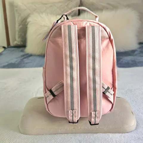 Compartimento principal con cierre Bolsillo frontal con cierre en U inversa Bolsillo frontal con cierre horizontal Incluye llavero con mono de Kipling Llavero colgante al interior Material: 100% Nylon Dimensiones: 25.5 cm de base x 35 cm de altura x 16 cm de profundidad.