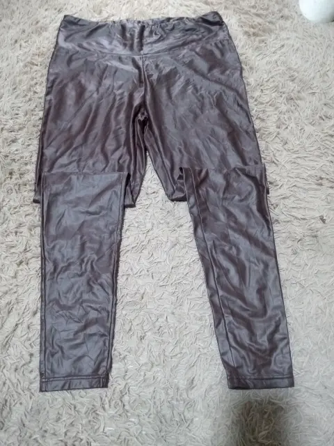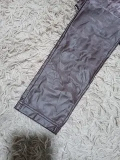 Hermoso pantalón. Es tela tipo vinipiel, no es afelpado,no tiene bolsas, es ajustado.Color café obscuro