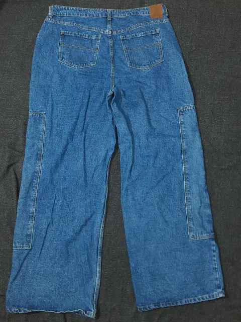 Pantalón tipo baggy carpintero, excelente mezclilla y en muy buen estado.Color original en las últimas fotos. Sin detalles, con acabados de muy buena calidad. ‼️MEDIDAS ‼️ Largo Total: 115 cm Cintura: 48 cm Tiro: 36 cm