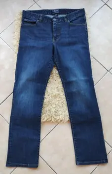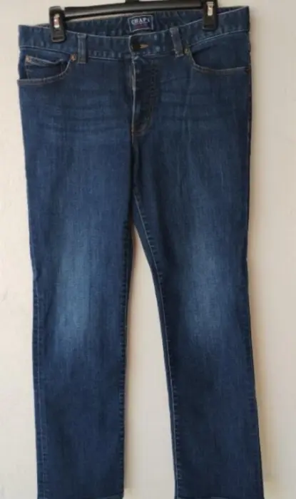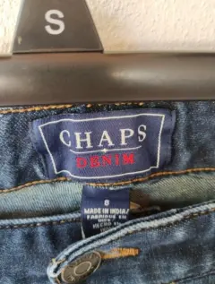 Jeans recto mezclilla Chaps M. Jeans azul mesclilla corte recto talla 8 americano o 9 mexicano, tiene ligero strech, usado prácticamente nuevo sin detalle ni desgasteMide 42 cm de cintura, 45 cm cadera, tiro medio de 23 cm y 97 cm de largo