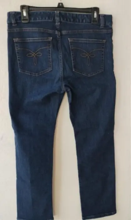 Jeans azul mesclilla corte recto talla 8 americano o 9 mexicano, tiene ligero strech, usado prácticamente nuevo sin detalle ni desgasteMide 42 cm de cintura, 45 cm cadera, tiro medio de 23 cm y 97 cm de largo