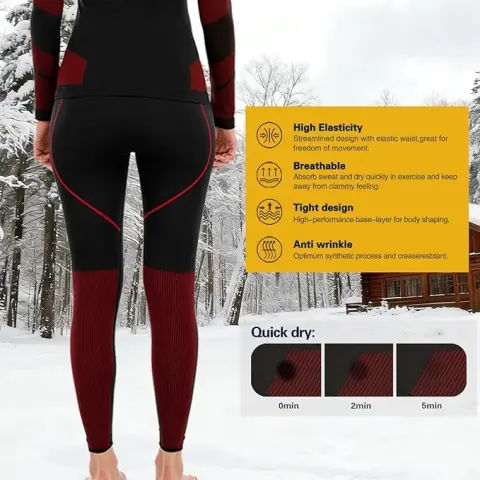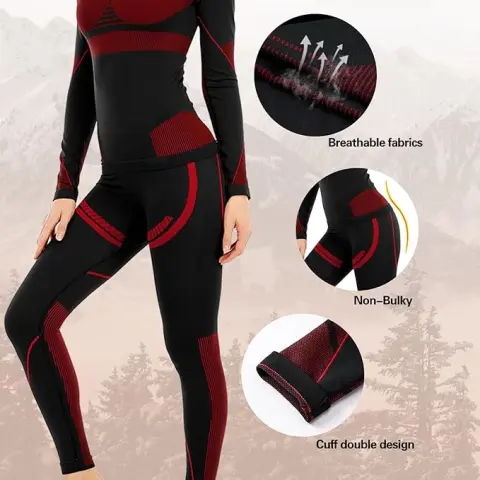 Leggins negros con rojo. Leggings térmicos largos sin costuras con forro polar para mujer, ropa interior cálida, capa base de invierno, color rojo