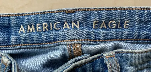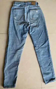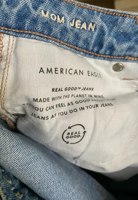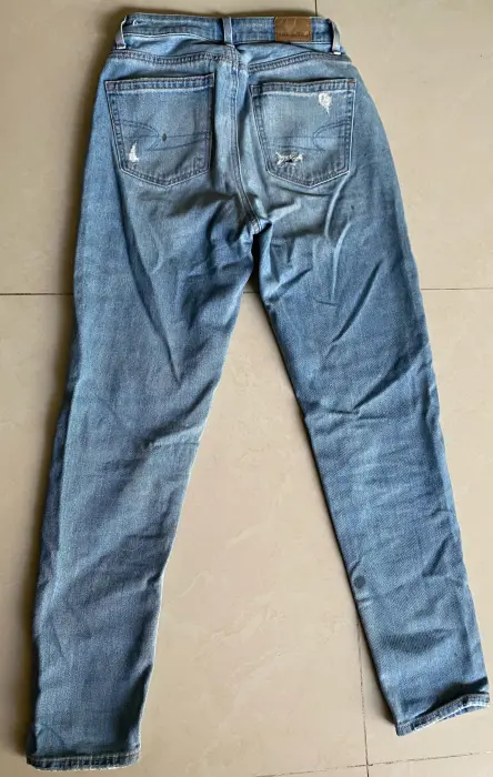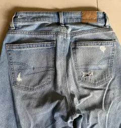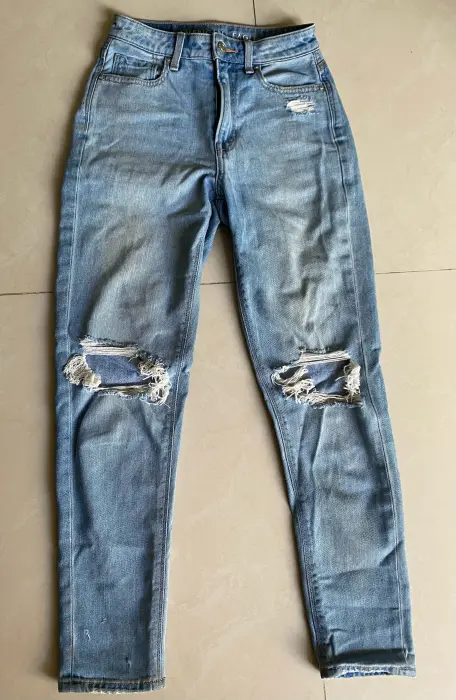 Mom jean original American Eagle, color azul claro. Mezclilla firme pero cómoda, corte que estiliza y rasgados cool que le dan todo el vibe. Perfectos para outfits casuales, street o con top básico. Un básico con actitud que combina con todo 💙