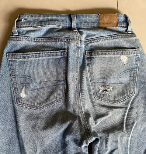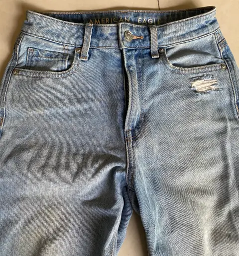 Mom jean American Eagle con rasgados. Mom jean original American Eagle, color azul claro. Mezclilla firme pero cómoda, corte que estiliza y rasgados cool que le dan todo el vibe. Perfectos para outfits casuales, street o con top básico. Un básico con actitud que combina con todo 💙