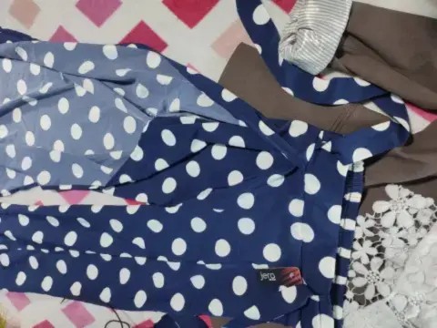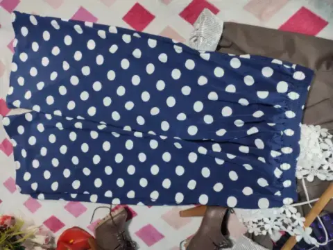 •Te interesa? Escucho ofertas•Deseas varias prendas? armo tu paquetePantalón pierna ancha, aberturas al frente. Azul marino, bolitas blancas. Tela rígida, fresca, ligera. Elástico en la cintura y cintillas para ajustar. Unitalla, da hasta una talla 11-13.
