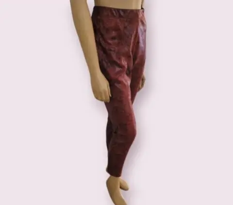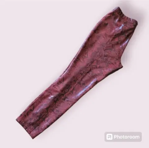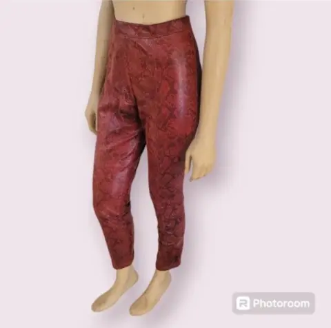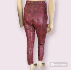 Pantalon Blank NYC para Mujer talla 28, color rojo con textura de vivora, tela elastica con cintura elástica, entubado, suave por dentro, mide 36cm de cintura, 47cm de cadera, 68cm de entrepierna, con 91cm de l