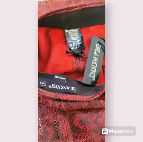 Pantalon Blank NYC para Mujer talla 28. Pantalon Blank NYC para Mujer talla 28, color rojo con textura de vivora, tela elastica con cintura elástica, entubado, suave por dentro, mide 36cm de cintura, 47cm de cadera, 68cm de entrepierna, con 91cm de l