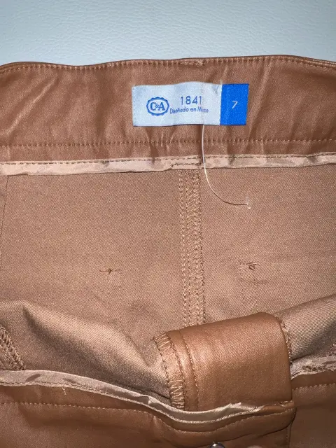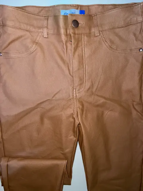 Pantalón camel talla 5 vinipiel pero es más encerado, bonito, como, elegante y nuevo sin etiqueta. Tal cual la imagen y viene en su talla